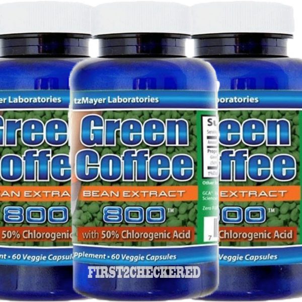 3 Bottles of Pure Green Coffee Bean Extract 800mg w/ 50% Chlorogenic Acid