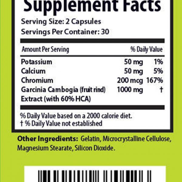 Garcinia Cambogia (cáscara de la fruta) 1.000 mg, Potasio 50 mg, 200