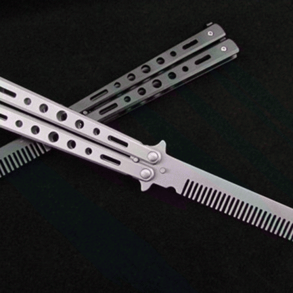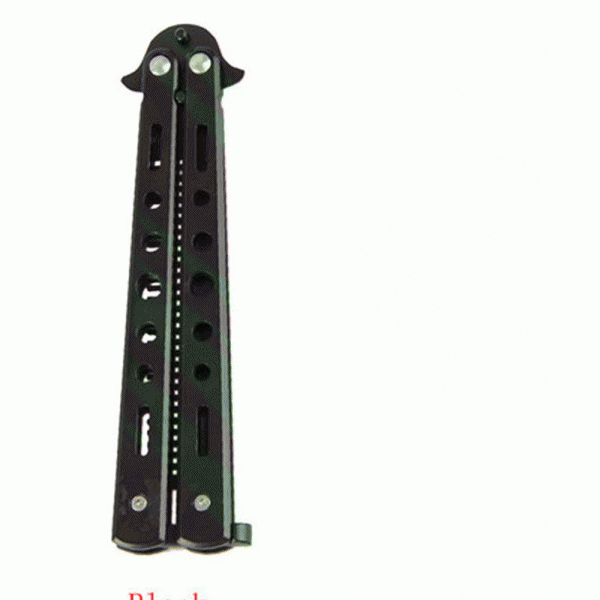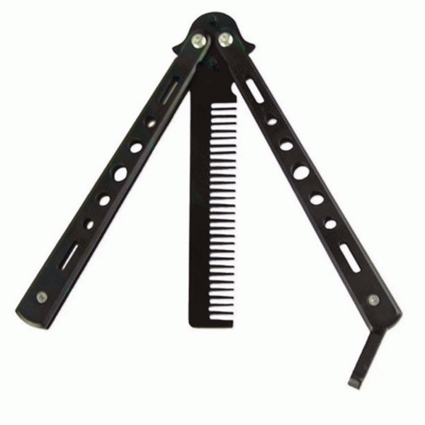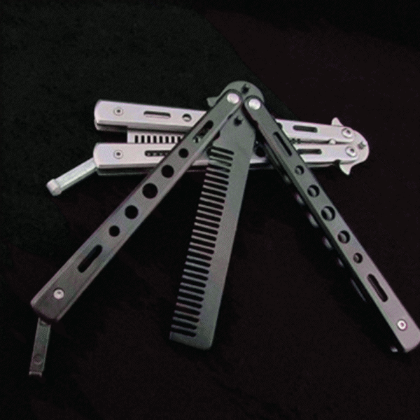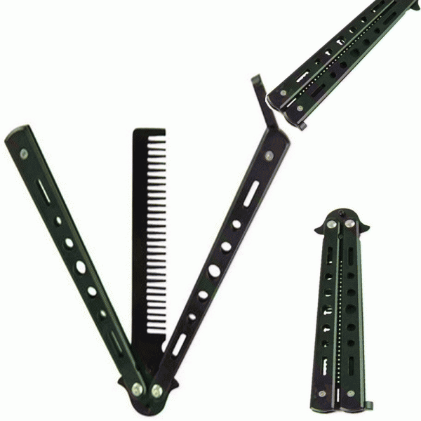 Color: Black Note: Very Important Please keep maintenance up as you may need to keep bolts tightened and adjusted as you use so bolts do not fall out and get lost.. Item will be Tight when you begin use, it will loosen as you use,, this is normal.. please keep item adjusted as you use.. This Butterfly Training COMB Blade Knife is perfect for learning how to use the real thing with out all the cuts and bruising to the hands and styling your hair as well.. Butterfly knife trainer Item included:1 x Folding Training COMB Blade Knife |