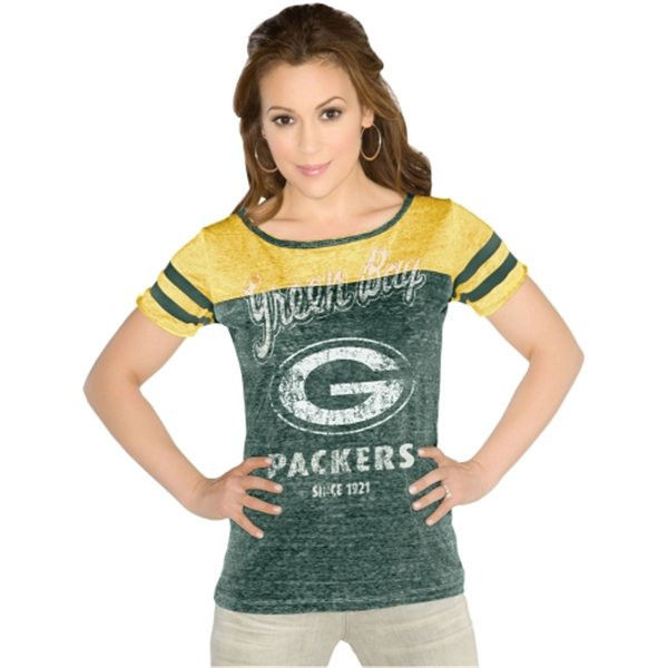 Touch by Alyssa Milano Green Bay Packers Women's All-Star Tri-Blend Slim Fit Burnout T-Shirt - Green/Gold