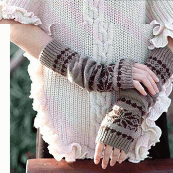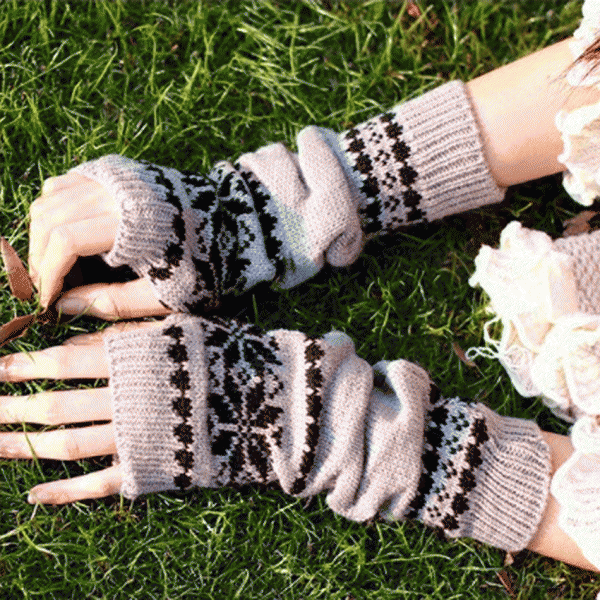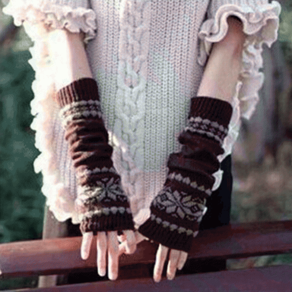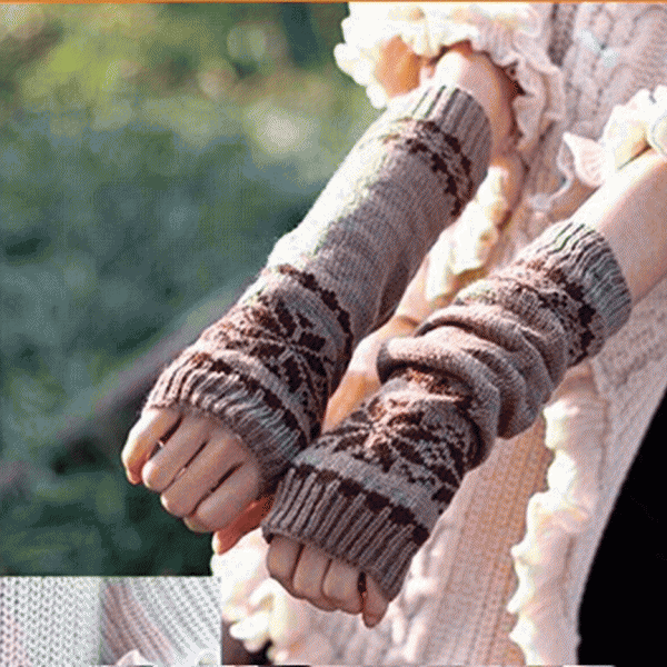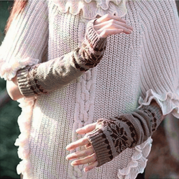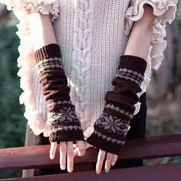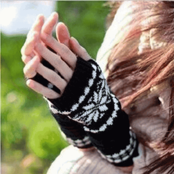1 Pair of Hand Warmer Mitten Gloves Long Fingerless Snowflake Winter