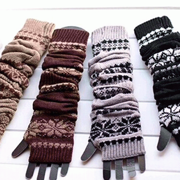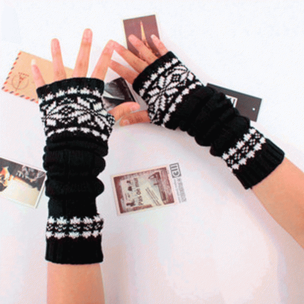 Hand Warmer Mitten Gloves Long Fingerless Snowflake Winter Fashion Arm Wrist NEW