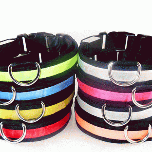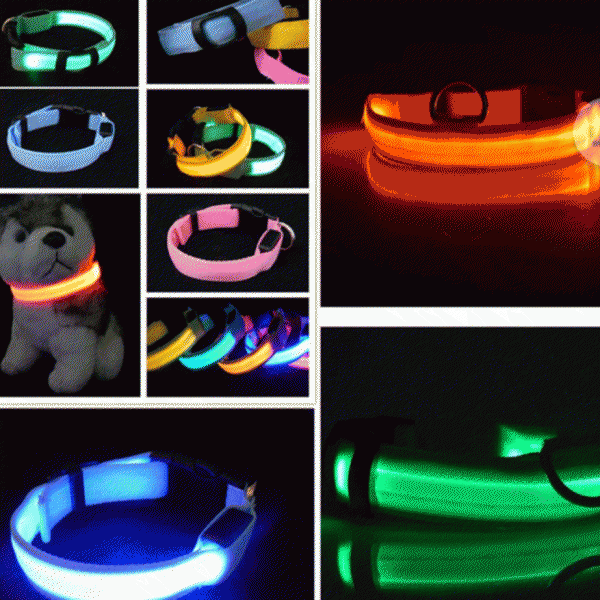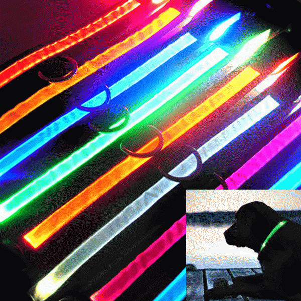 LED Light Up Dog Collar Nylon Pet Night Safety Bright Flashing Adjustable NEW