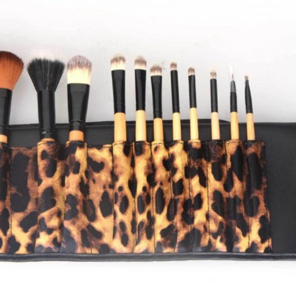 - Makeup Brushes Set 12 Pcs Kit CosmeticTool Loepard Bag Beauty Eyeshadow Eyeliner