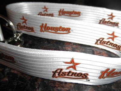 MLB WHITE Astros Lanyard Keychain ID Phone Velcro