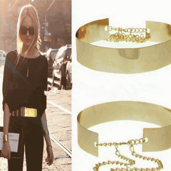 1 New Fashion Apparel Accessories Belts for Women Mirror Gold Metal Belt with Chain